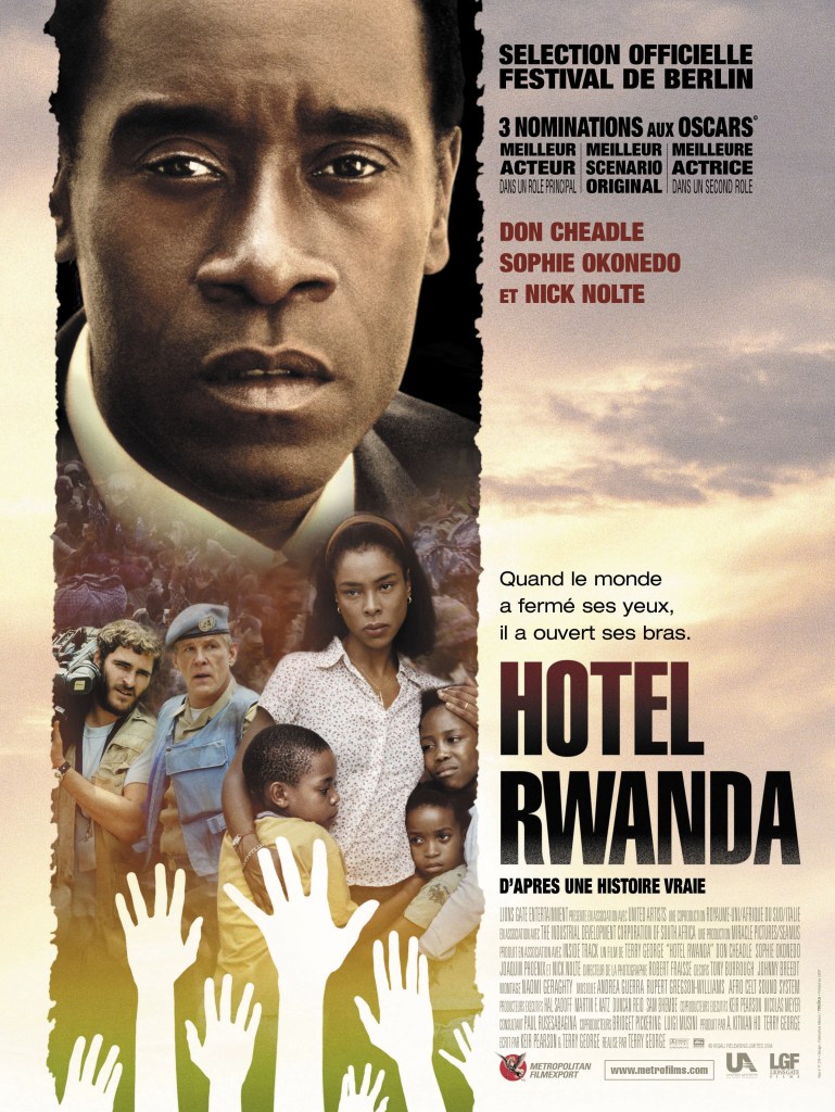 Hotel Ruanda: lançado em 2004, este filme é uma das narrativas mais conhecidas sobre o Genocídio. Conta a história real do Hotel de luxo Mille Collines, que se tornou uma espécie de “santuário” durante os assassinatos. Através de propinas e troca de favores, o gerente do Hotel, Paul Rusesabagina, conseguiu abrigar cerca de mil tutsis por algumas semanas até a evacuação para zonas controladas por milícias favoráveis à etnia.