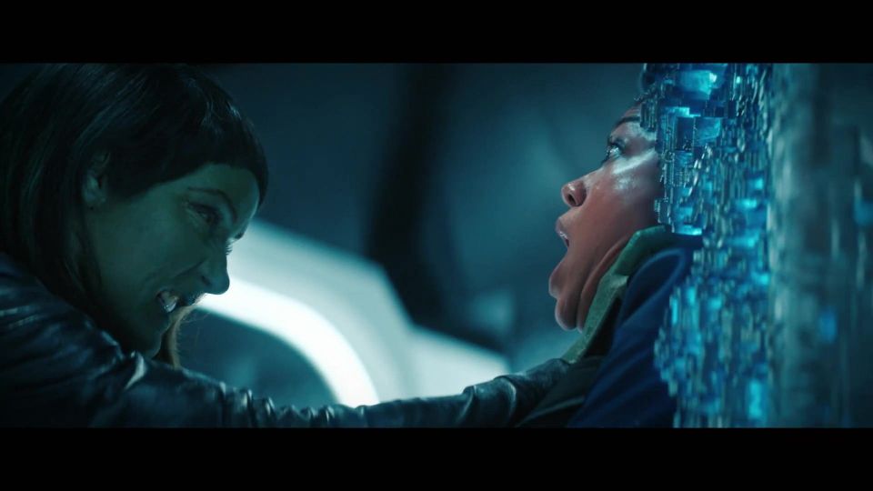 Mesmo começando com um ritmo mais lento, com as atenções voltadas ao universo holográfico, não demora para a ação se concentrar na batalha entre a Discovery tomada por Osyraa e as naves da Federação. Onde já há um pequeno furo de roteiro, a boa e velha plot armor (o protagonista é invencível) quando uma nave com 900 anos de idade resiste por tanto tempo contra dezenas de outras.