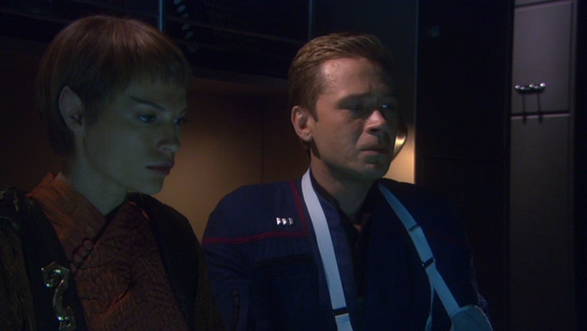 O principal entretanto é outra coisa para mim. Na verdade, mesmo se passando 6 anos e uma guerra contra Romulus, a primeira interplanetária que a Terra enfrentaria, a sensação é que não houve nada… nenhum personagem, exceto Shran, ganhou um desenvolvimento novo referente a esse meio tempo – nem as patentes dos tripulantes foi modificada. Como havia ainda esperanças da série ser renovada, mesmo com o cancelamento anunciado, provavelmente a produção não desejava colocar determinadas coisas que poderiam engessar uma eventual quinta temporada… o que já comprometia logo de cara o objetivo do episódio, será que ninguém não pensou nisso?