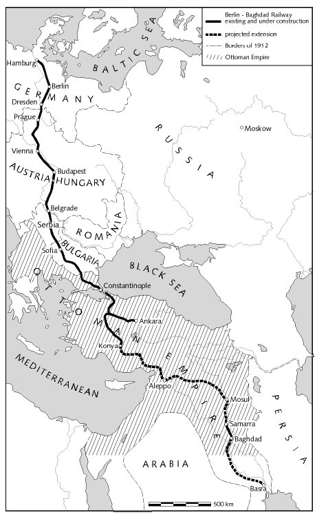 Também interessados em conquistar o Império Otomano, mas certos que não conseguiriam a mesma boquinha junto das demais potências, os alemães tentaram uma abordagem completamente diferente: fortalecer aquele país. Isso através de financiamento político e econômico e, mais importante, seu consequente endividamento perante os alemães. Uma das principais empreitadas disso seria a construção de uma rede ferroviária que atravessasse todo o grande e diverso reino, e, eventualmente, conectasse Berlim a Bagdá (e Basra).