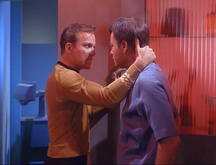 S01E04: O Inimigo Interior – Após uma interferência no equipamento de transporte, o Capitão Kirk é dividido em duas pessoas diferentes, com personalidades muito distintas. Uma premissa absurda para um enredo tedioso e que é um exemplar nítido de capítulo mau envelhecido por razões de roteiro: a primeira das atitudes do Kirk Agressivo é tentar estuprar a Ordenança Rand.