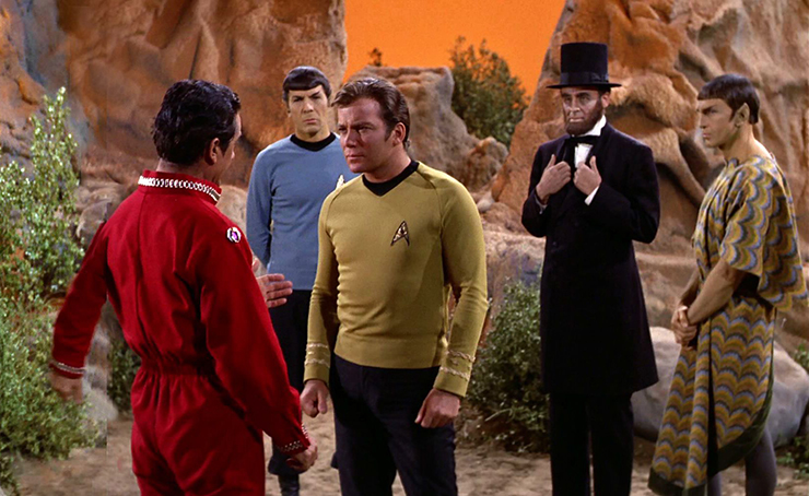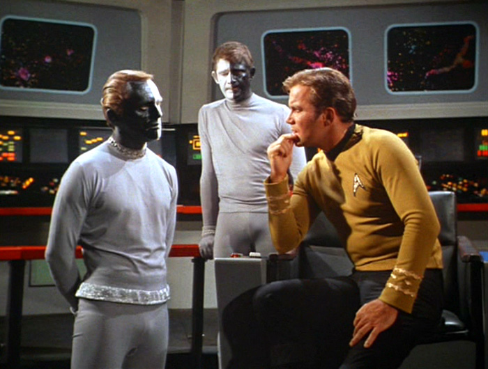 Lá por volta da metade da temporada tivemos A Última Batalha, um episódio que a primeira vista não é tão chamativo, talvez pela simplicidade visual da maquiagem dos personagens ou dos efeitos especiais que apenas alteram as cores da imagem; mas que possui um final dos mais densos e inteligentes de todo o seriado. Infelizmente, acho que a postura de Kirk – nesse sentido, do seriado – deixa a desejar ao não perceber que não era exatamente um conflito em pé de igualdade entre os dois personagens (o que fica claro quando um apresenta poderes quase de um Q e o outro não).