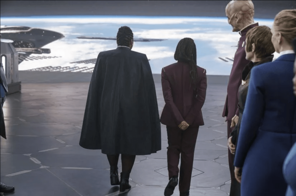 Uma coisa que me chamou a atenção e demonstrou mais uma vez falta de cuidado no roteiro é que Michael, pela primeira vez desde que saíram do quartel da Federação, lembrou dos delegados diplomáticos que a Discovery estava transportando para o Primeiro Contato. Completamente ausentes de todas as decisões tomadas, eles são rememorados, apenas para serem ignorados logo em seguida. Quando vi uma comitiva descendo ao planeta para a conversa final, imaginei que seriam eles, mas inexplicavelmente são os tripulantes da ponte.