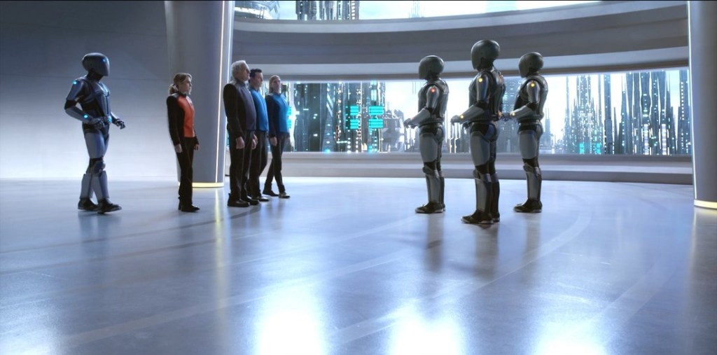 Temos mais uma sensação de assistir um pequeno filme, tudo é bem distribuído pelo tempo de tela e temos um crescendo de ação e tensão muito bem administrado – e sabendo usar muito bem do absurdo de cada situação. E tudo isso caminhando dentro de uma das premissas mais interessantes que me lembro da Ficção Científica recente, remetendo não somente ao Classic Trek, e sim algo ainda mais refinado. E o roteiro vai te dando pistas para entender o que exatamente está se buscando em cada aventura.