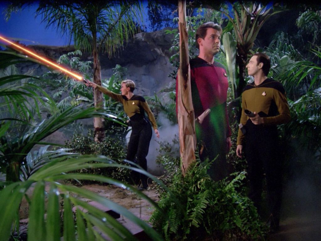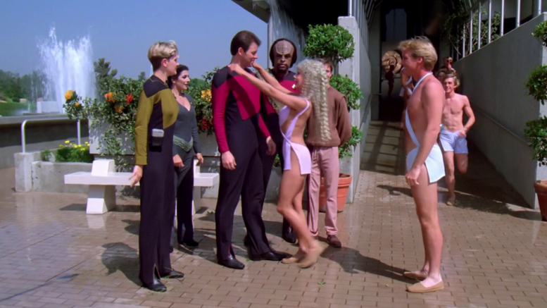 S01E13: A Ordem Estabelecida – Um suco concentrado de tudo que há de ruim na primeira temporada de TNG pode ser encontrado aqui. Buscando pistas de uma tripulação de um cargueiro desaparecido há alguns anos, nossos heróis encontram Angel I, um planeta construído através de uma sociedade matriarcal que exerce forte repressão aos homens de sua espécie.