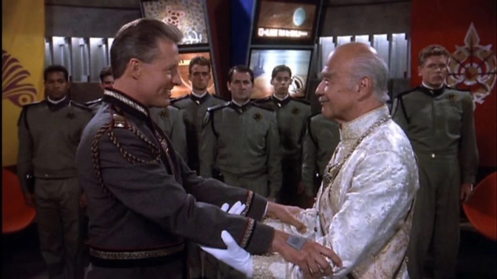 E mérito de B5 mais uma vez. Eu, se não fosse pesquisar agora, acreditaria que toda a transição era algo programado. Muito sabiamente, os segredos envolvendo a seleção de Sinclair são revelados aqui e seu “desaparecimento” tem a impressão real de fazer parte de “algo maior”. Sem medo de ser feliz, B5 vai profundo no desenvolvimento do lore do seriado logo no início da temporada, e isso dá muita força ao seriado porque sabemos que vem mais coisa pela frente e dá mais confiança em B5. Uma aula de roteiro – apesar de achar um pouco extravagante a explicação.