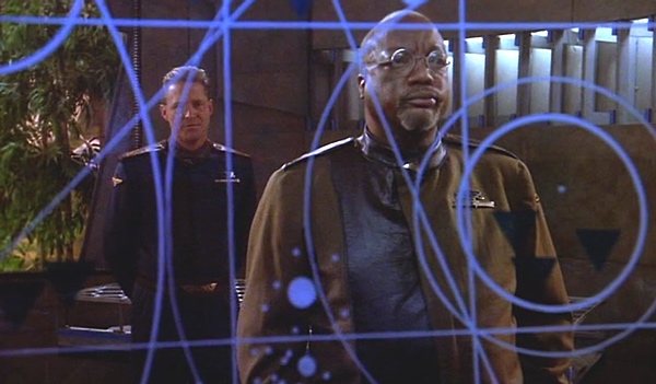 Gosto do traço do personagem que não queria seu papel mas se torna herói, não deixa de ser clichê, e repetitivo porque Sinclair também teve essa postura, mas achei que funciona bem para dar mais profundidade para Sheridan – especialmente porque ele deixa transparecer em vários momentos do capítulo que está frustrado com o comando mesmo sendo protagonista do seriado por isso.