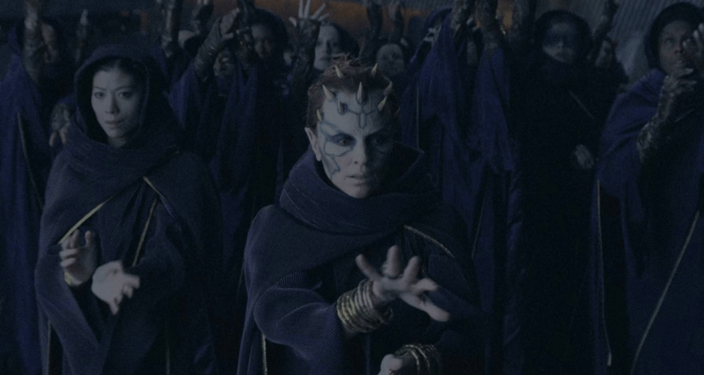 O pior de tudo é que, mantendo a mesma a linha dessas agendas sócio-políticas liberais vindo de grandes empresas – da grande burguesia, diria um marxista – não tem nenhuma crítica profunda a esses temas em A Alcólita. Foi tudo uma cortina de fumaça, a forma antes do conteúdo, para gerar engajamento em torno de algo marginal. As temáticas gay e feminista, que estariam presentes nos núcleos referentes às bruxas e às gêmeas, são bastante pontuais e sutis – e nesse sentido, boas, e marcam uma importante presença no universo ficcional. Todos entenderíamos que a comunidade das bruxas era exclusivamente matriarcal e baseada em laços homo afetivos sem precisar esfregar nada na cara de ninguém. Não fossem as desastrosas entrevistas, provavelmente isso sequer seria levantado como “problema” do seriado, exceto por uma camada extremamente conservadora que acabaria falando sozinha. Mas a opção de focar no engajamento em primeiro lugar, foi prejudicial para enfraquecer a crítica central: a alegoria do civilizador intervindo sobre os bárbaros, encarnados aqui com os Jedi atacando, ainda que por motivos nobres, grupos de minorias religiosas da Força.