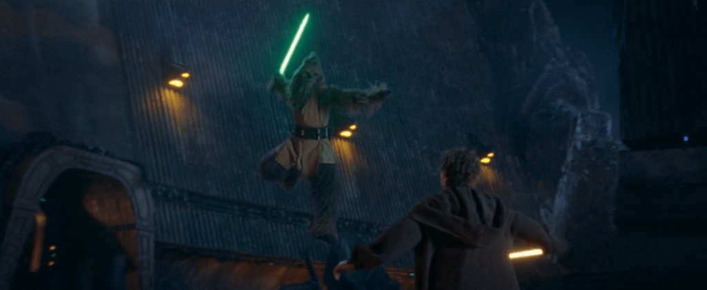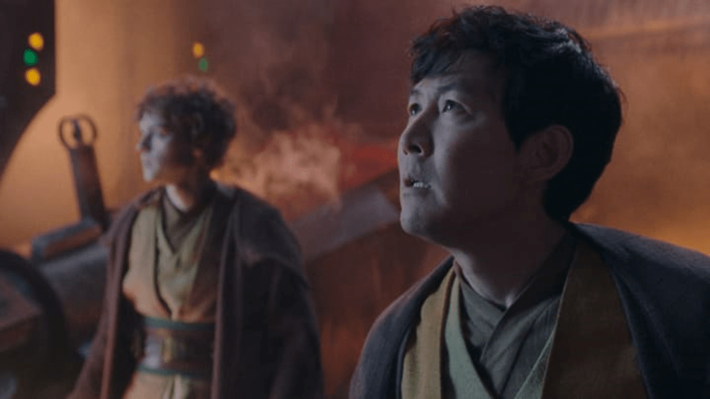E isso nos leva ao grande elefante na sala, o texto. O roteiro é ousado em apresentar importantes revelações e mesmo em matar alguns personagens – pelo menos por enquanto, depois dos inquisidores de Kenobi não acredito em nenhuma morte das séries de Star Wars – entretanto é tudo sem pé-nem-cabeça. O “Sith” deu a entender que já conhecia Sol, e de fato eles se encontraram alguns capítulos antes, mas é daquilo que estão falando? Ou era algo mais profundo? Se era este último, por que não notou anteriormente? Há outras coisas muito ruins, como o sabre de luz ser utilizado como lanterna, ou o vilão ser derrotado, que aniquilou meia dúzia de cavaleiros, porque prenderam um papel com “me chute” nas costas dele.