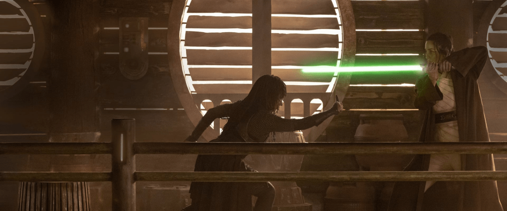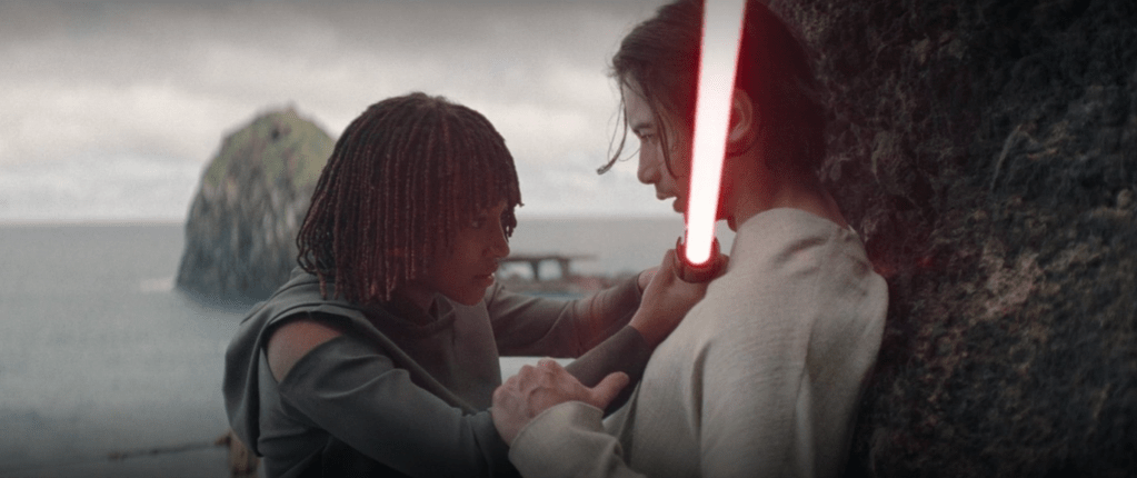 Ainda assim há altos e baixos; a luta entre os Jedi é ótima, bem coreografada e tensa; assim como todo o lore envolvendo a “vergência” da Força e o planeta ganhando vida. Por outro lado, nunca fica claro do porquê da obsessão de Sol por Osha, e era questão de simplesmente justificar por alguma interferência da Força; assim como a cena que causa o mau entendido seja incompreensível. O que a mãe estava fazendo? Teletransportando? Fica muita coisa pela metade mas vamos dar um voto de confiança.