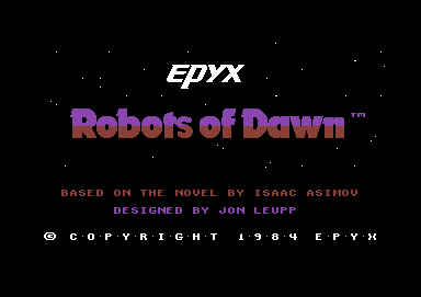 Vídeo Game: supreendentemente, há uma adaptação em forma de game deste livro – ou quase isso. Lançado em 1984 para o Commodore 64 e Apple II, The Robots of Dawn (título original em inglês do livro) é um text-adventure. Uma espécie de livro interativo, no qual o jogo apenas dispõe textos na tela e o jogador consegue explorar o mundo através de comandos (leste, oeste, abrir, fechar) e conduzir diálogos com os personagens. No caso de Robôs da Alvorada, devemos controlar Elijah e conduzir perguntas aos principais suspeitos e testemunhas – assim como no livro. O interessante é que a programação e escrita no game fazem com que existam diferentes finais – com diferentes responsáveis pela morte de Jander Panell.