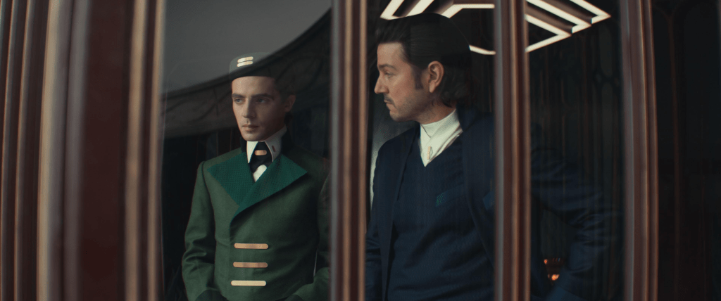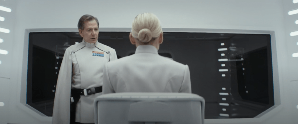 Buscando criar uma noção forte de sincronia entre os eventos e a conexão entre os diversos núcleos, assim como a intensidade de cada um, a direção neste episódio usa um recurso arriscado: cada núcleo (Cassian, Mothma, Bix e o recém introduzido casal imperial) tem direito a uma única cena por vez. Um diálogo aqui e cortamos para um grupo andando lá; e aí segue para o protagonista tentando algo… que só vamos ver o resultado depois de cada outro grupo ter a sua cena e o ciclo rodar.