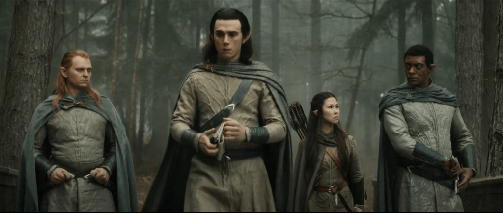 Enquanto isso, entre os elfos, o seriado faz um grande esforço para tentar desfazer a impressão que ficou na temporada anterior, de pura ingenuidade ao aceitar os anéis. Há sucessos, como a frase de Gil-Galad, quando explica que as ações de Galadriel que os deixaram sem alternativa; mas também certas bolas-foras, como Cídran em mais uma versão de um o elfo bondoso e ingênuo que passa a desejar os anéis por acidente – mas muito legal o toque de lembrar que ele era o único de sua raça com barba.